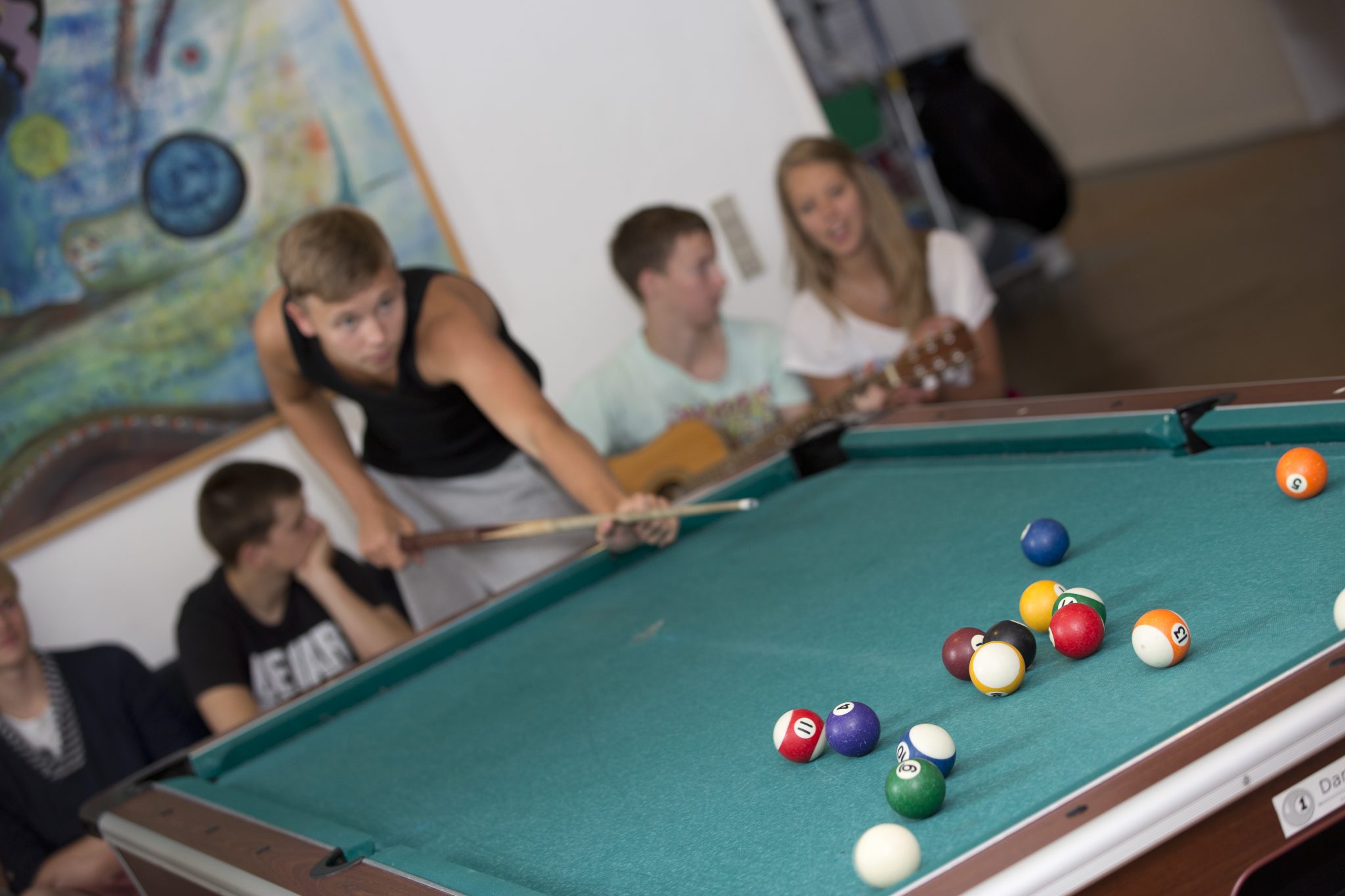 Du bestemmer selv over din fritid på skolen. I dagtimerne må du selvfølgelig forlade skolen for at shoppe i byen. Om aftenen har vi ofte tilbud om aktiviteter, og sammen planlægger vi boldspilsturneringer, klassekonkurrencer eller ture til svømmehallen. Skolens veludstyrede faglokaler er altid åbne, så du i fritiden har mulighed for at arbejde videre med de fag, der interesserer dig.